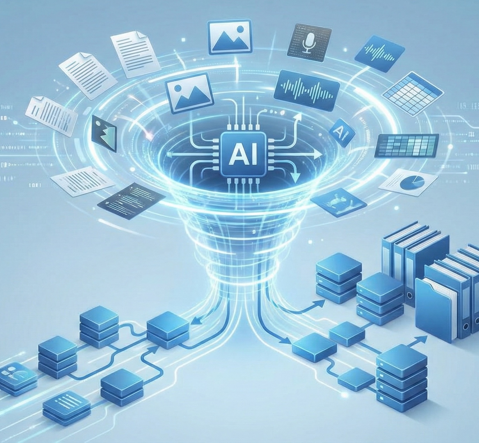 質の高い情報基盤を構築し、情報管理と AI の活用を安定して支援します。